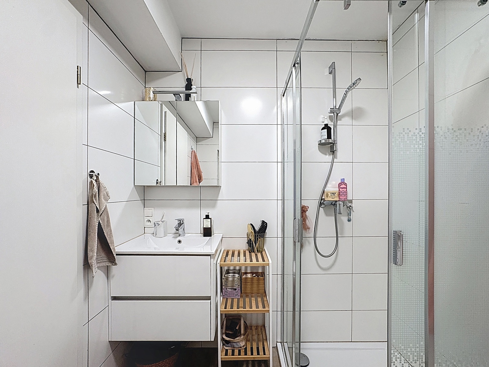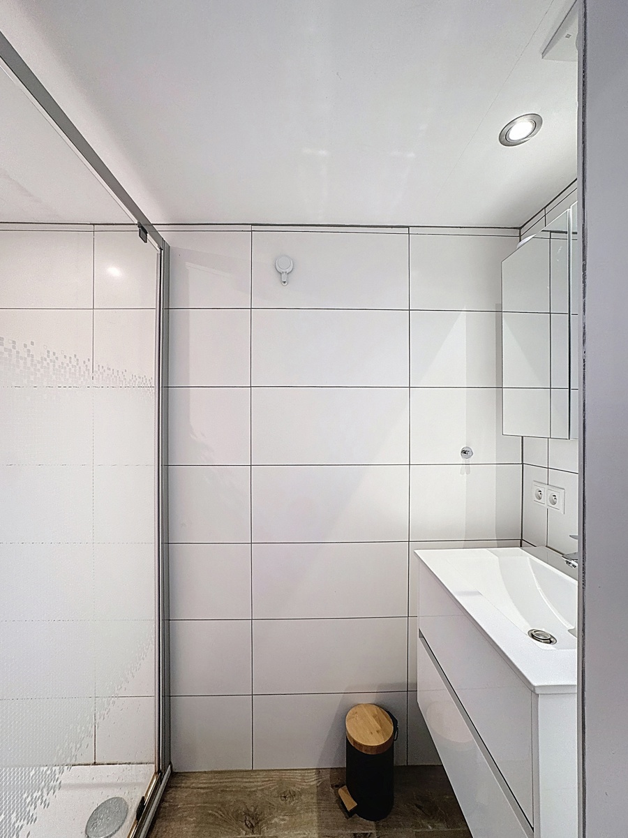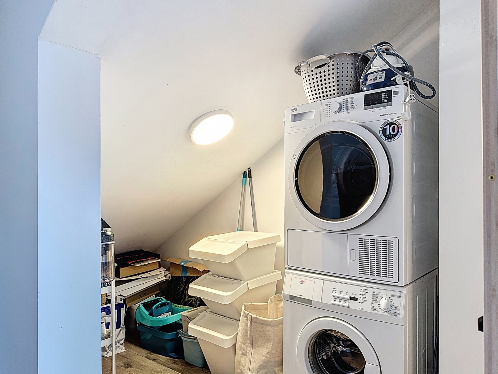 Il se compose d’un hall d’entrée, d’un lumineux séjour avec cuisine équipée ouverte, d’une mezzanine pouvant servir d’espace bureau, d’un coin buanderie, de deux belles chambres, ainsi que de deux salles de douche, dont l’une avec WC.